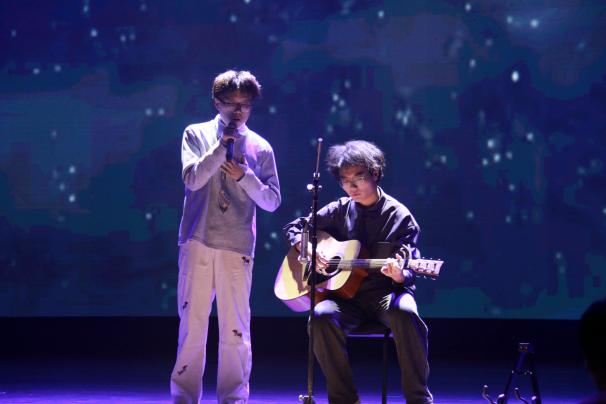 进入“同心驭远・共赴新程”篇章,民乐《锦绣欢情》、歌曲串烧《第J象限》、诗朗诵《青春》等节目依次呈现,传递青春热情。合唱《La La Land》选段与《我们都是追梦人》激励师生勇敢前行。晚会最后在全体师生共同唱响《相亲相爱一家人》的温馨氛围中画上了圆满的句点。