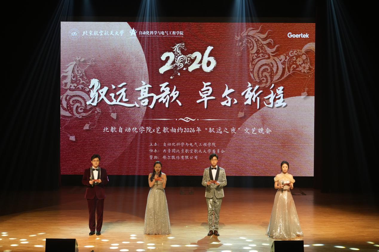 (通讯员 敖玉翔 鲁思为)2025年12月28日晚,北京航空航天大学自动化科学与电气工程学院在晨兴音乐厅举办“驭远高歌 卓尔新程——北航自动化学院×艺航相约2026年‘驭远之夜’文艺晚会”。师生欢聚一堂,通过三个篇章、十七个精彩节目,共叙青春、表彰先进、展望新年。